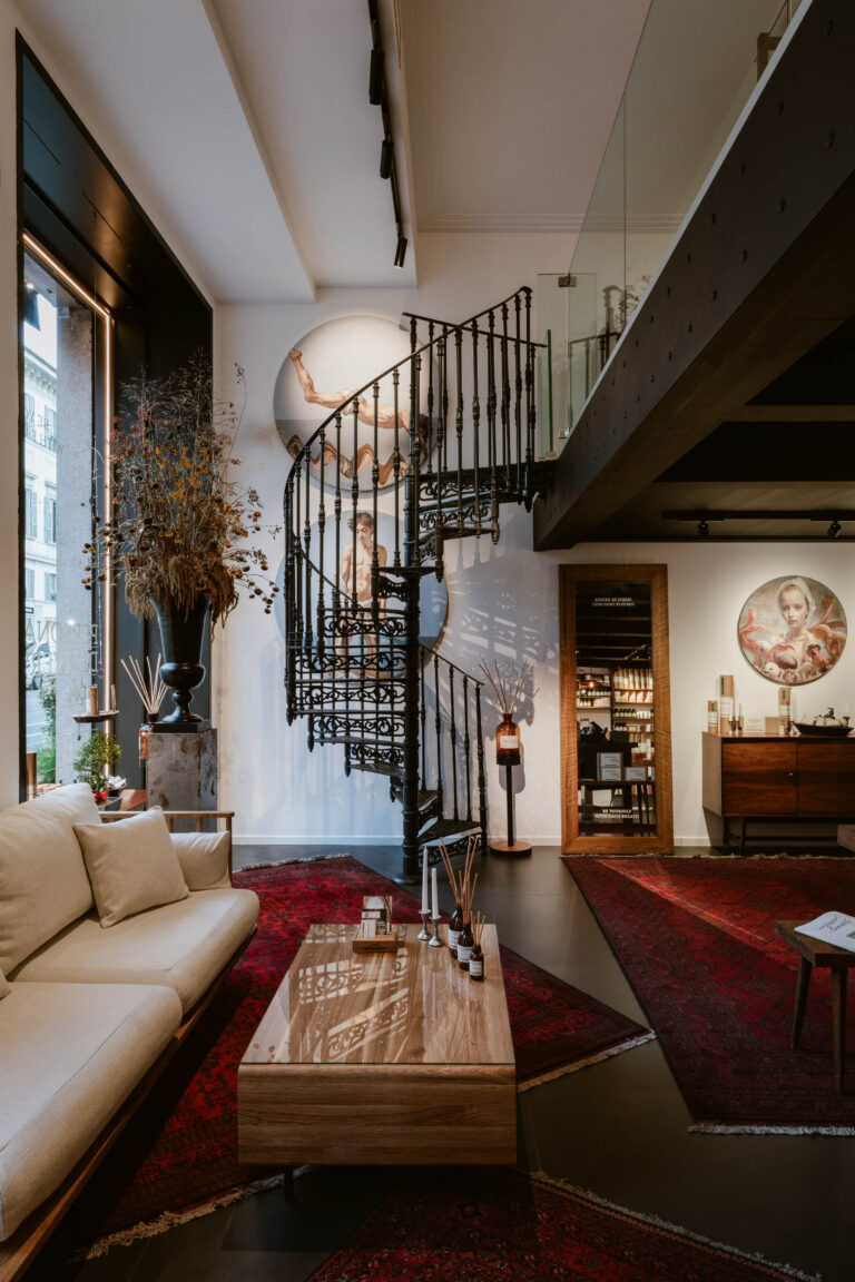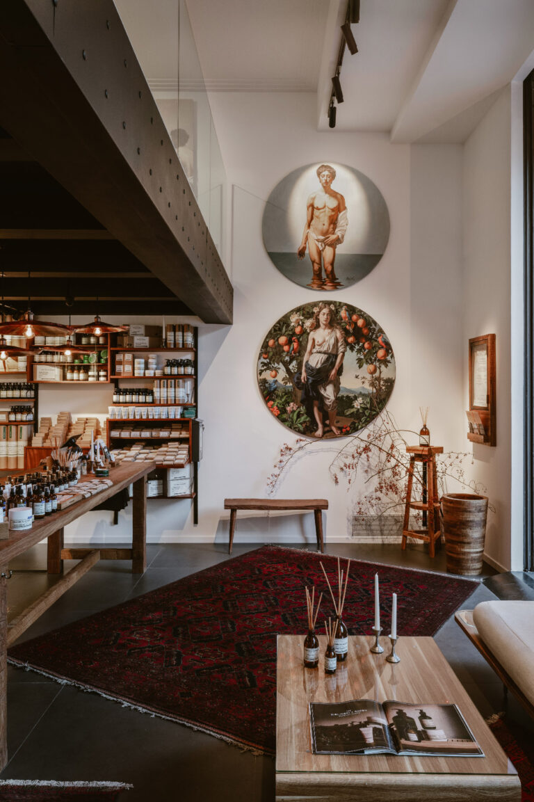 - Диван (материал: массив дуба, стекло, бронзовые ножки собственного производства, эпоксидная смола, обработка дерева маслом)