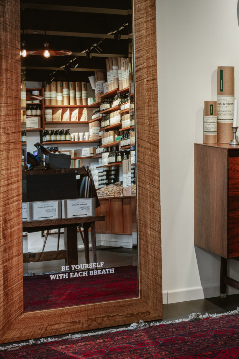 - Зеркало в дубовой раме (материал: массив дуба, зеркало, декоративная резьба «запил», обработка дерева маслом)