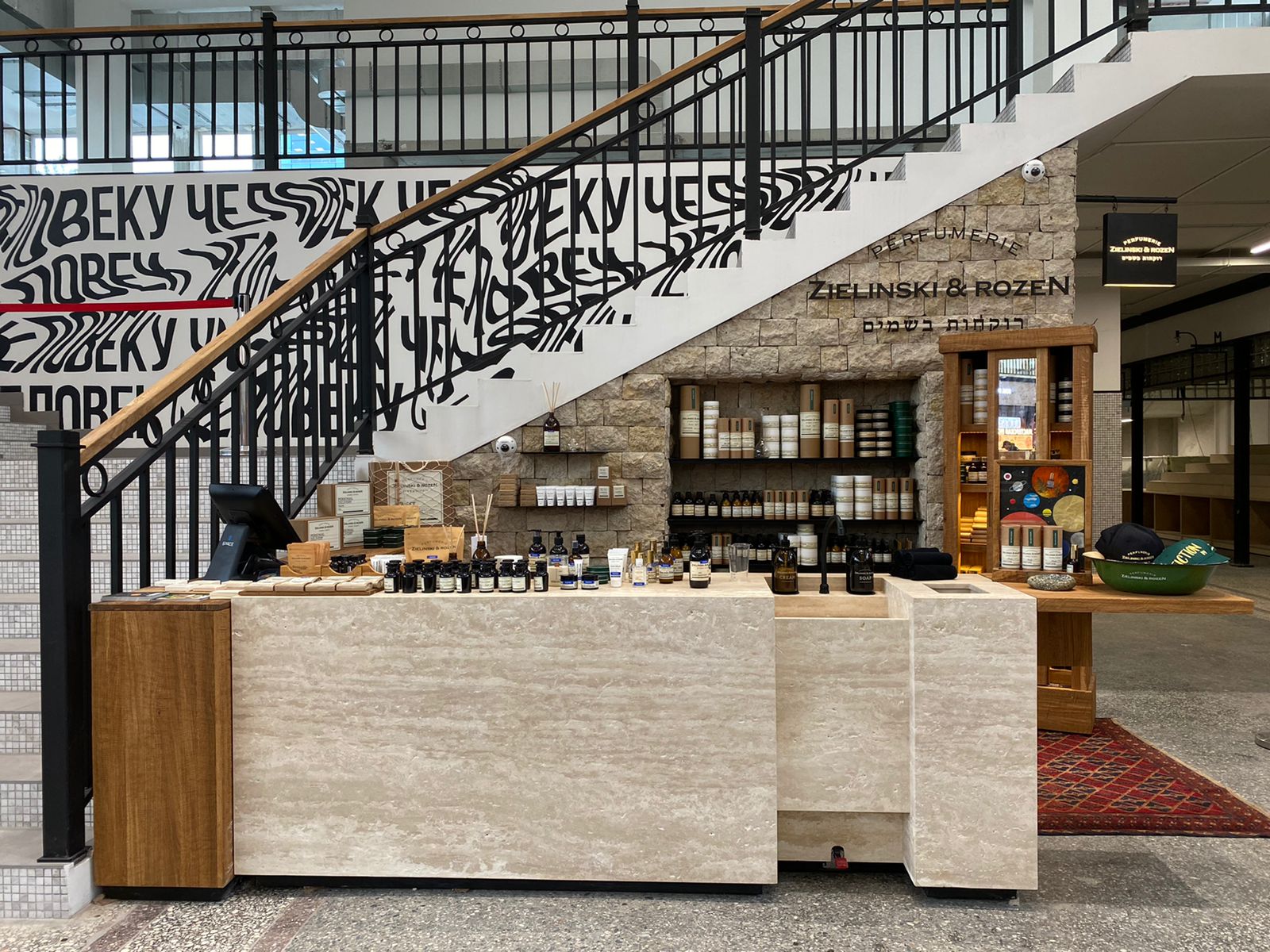 - Изготовлена часть изделий из массива дуба (шкаф с зеркалами, тумба, откидной столик и деревянное наполнение на стойку продавца).